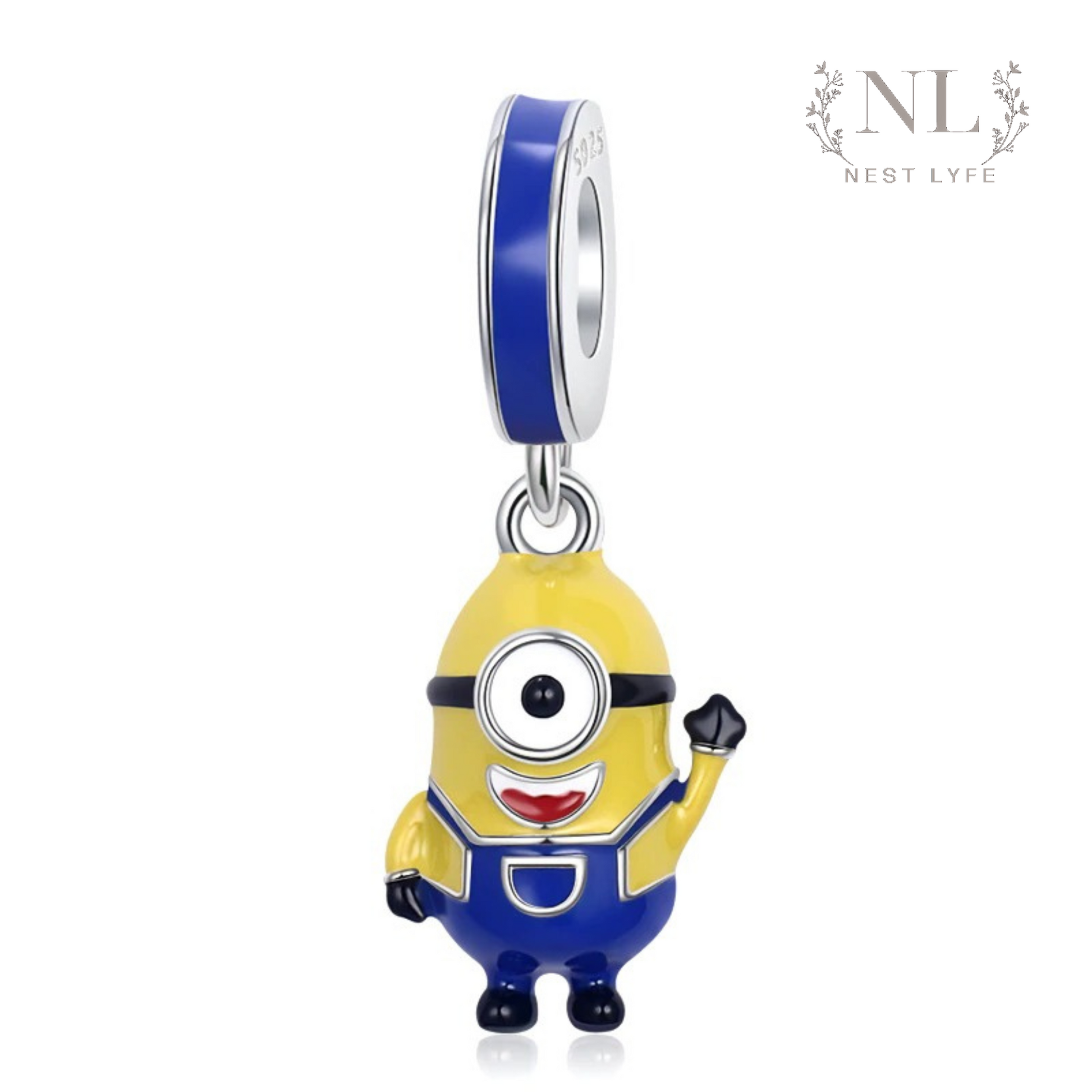 Stuart Minion charm is made of 100% S925 Sterling Silver and is decorated with blue and yellow enamel to make is more realistic with the movie.